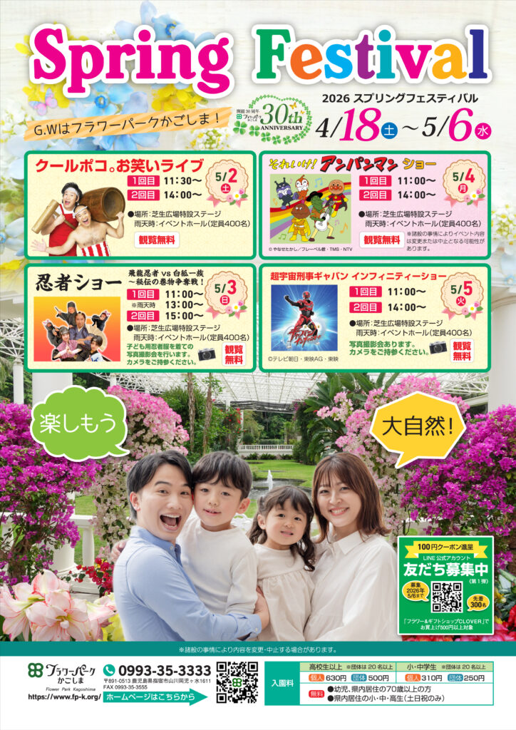4/18(土)~5/6(水) フラワーパークかごしまにてイベントが開催