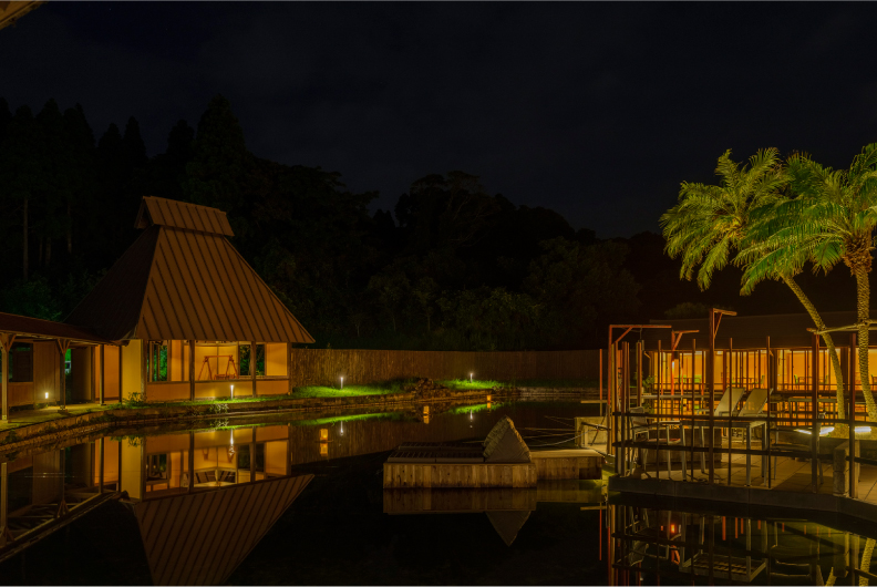 街の喧騒から遠く離れた、静けさと非日常を感じるプライベート空間。お部屋ごとの個性豊かな露天風呂で誰にも気兼ねなくお寛ぎいただけます。もちろんお湯は、高名な指宿の温泉を掛け流し。
