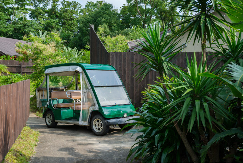 移動はカートでリゾート感覚を