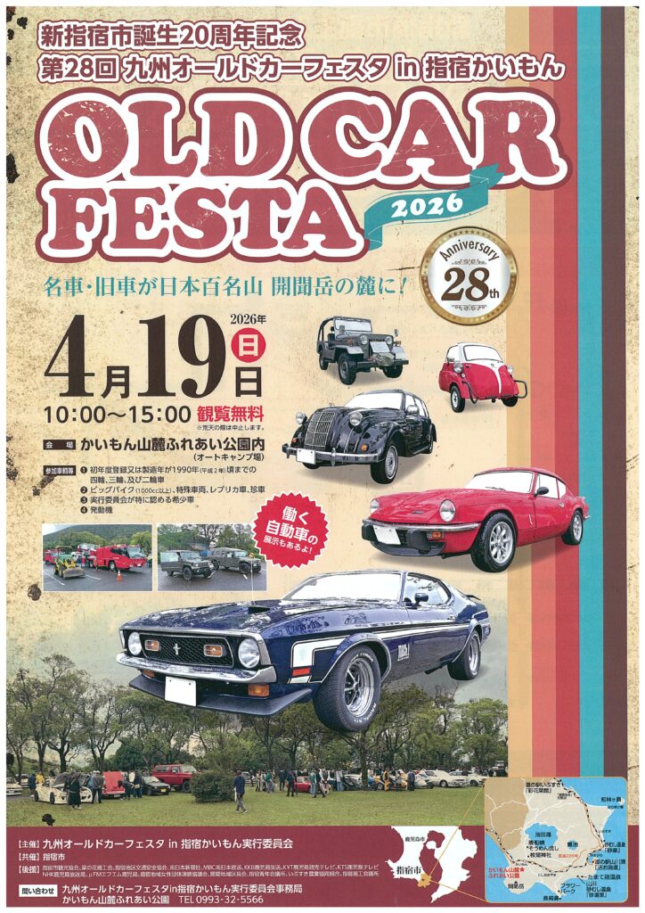 「第28回 九州オールドカーフェスタ in 指宿かいもん」が開催されます。